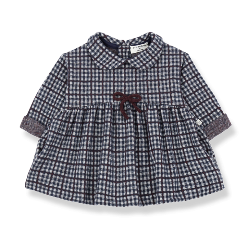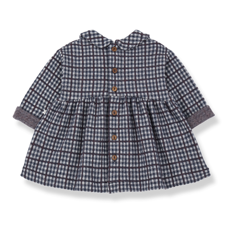 Bellissimo abito per bambina di 1+ in the family, realizzato in caldo cotone, morbido e delicato sulla pelle dei bambini. Questo vestito a manica lunga, ha una trama a quadretti, apertura posteriore con bottoni, risvolti su maniche e taglio svasato. Un abito bello e grintoso, perfetto per l'autunno-inverno.