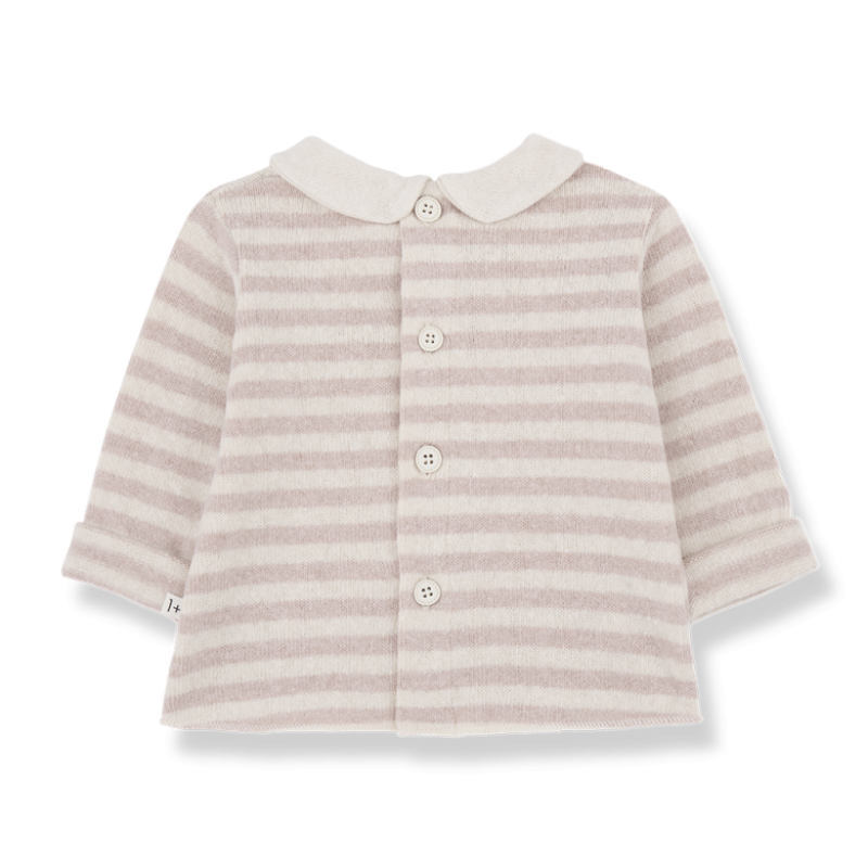 Una bellissima maglia per bambina, di 1+ in the Family, morbida e delicata sulla pelle dei bambini. Questa maglietta a righe color nude ha dei risvoltini nelle maniche. Una magliettina perfetta per l'autunno-inverno.