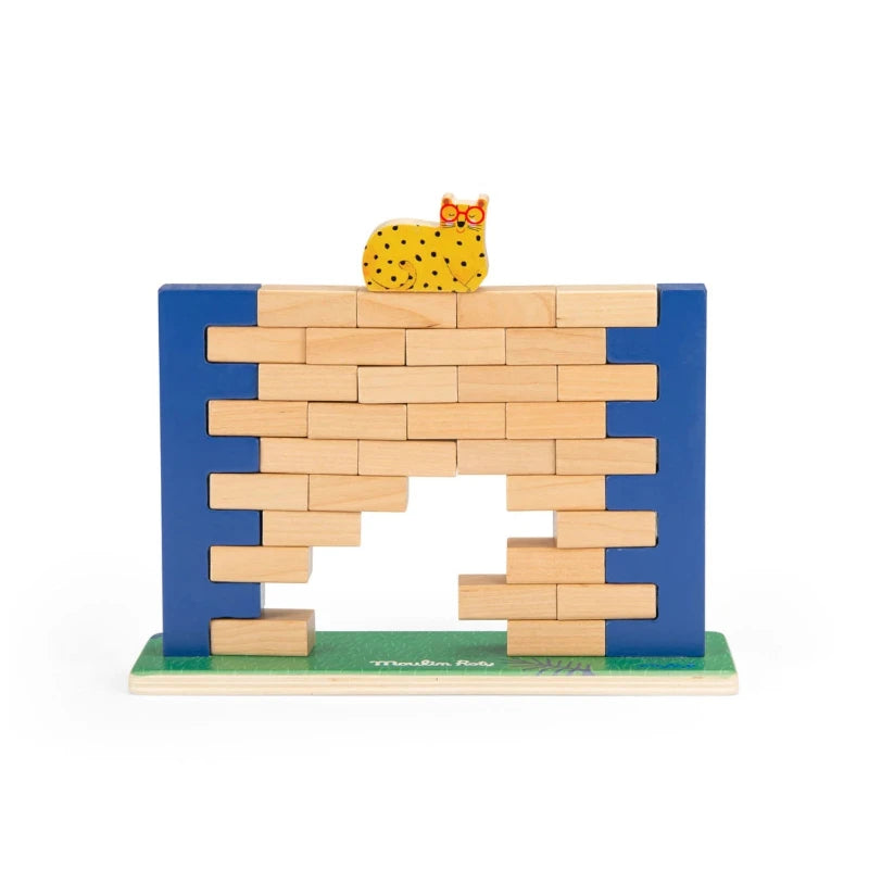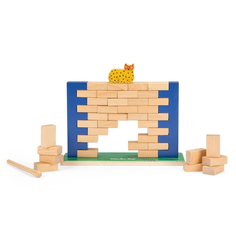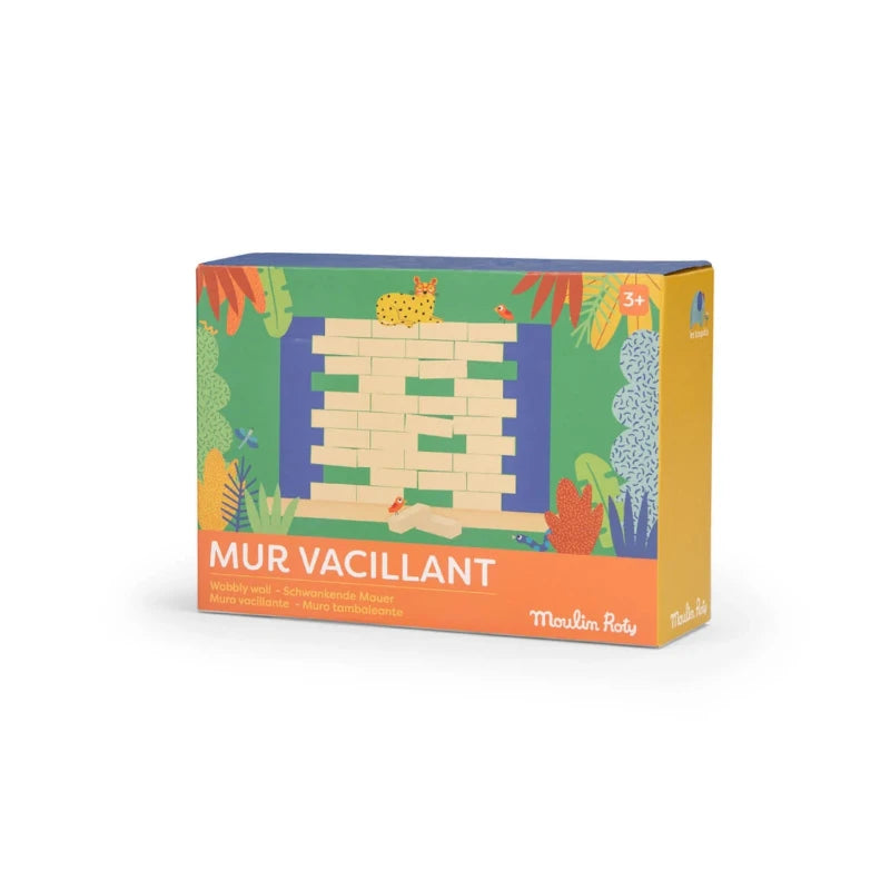 Un muro in legno di Moulin Roty con il quale i vostri bambini potranno divertirsi a sfidare sè stessi! Con questo curioso gioco i vostri bambini dovranno cercare di rimuovere quanti più mattoncini possibile senza far cadere Leopardo! Quando il muro crolla, il gioco è finito... e il Leopardo si sveglia! Nella scatola troverete 40 mattoncini in legno, 1 bastoncino e una custodia inclusa. Si gioca in 2 o più giocatori!