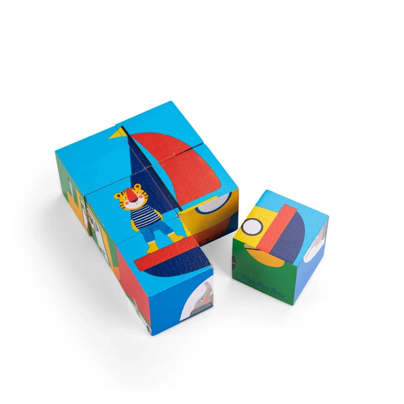 Un bellissimo gioco in legno di Moulin Roty che si fa in 2: puzzle e gioco di costruzioni. Ogni faccia del cubo riproduce un pezzo di un mezzo di trasporto: riusciranno i vostri bambini a riprodurli tutti?