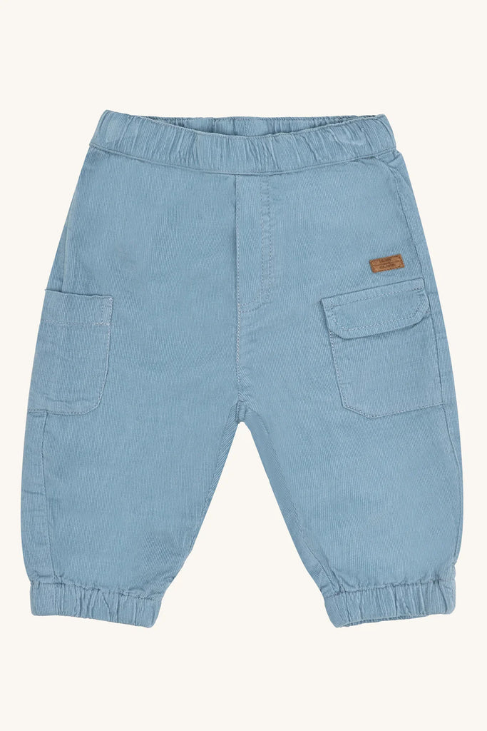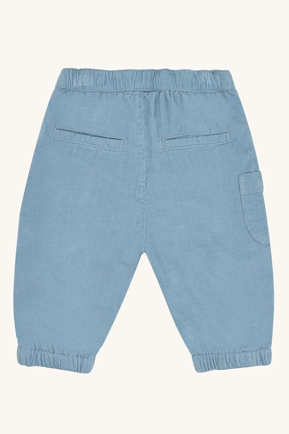 Caldo e morbido pantalone da bambino in cotone biologico nella tonalità carta da zucchero, con in vita un comodo elastico e delle graziose tasche laterali. Un pantalone perfetto per l'autunno-inverno!