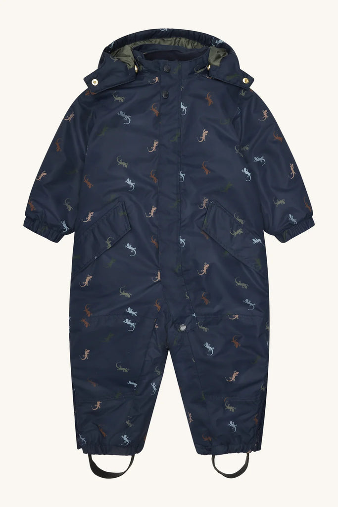 Questa bellissima tutona da neve di Hust & Claire è realizzata in tessuto tecnico impermeabile e all'interno una calda imbottitura, garantisce ai neonati un comfort ineguagliabile e una traspirabilità eccellente. Questa tuta ha un bellissimo disegno di lucertole e un apertura tramite zip. Rinforzata sul retro e sulle ginocchia per una durata maggiore nel tempo. Polsini con foro per il pollice per trattenere il calore. Dettagli riflettenti sul retro offrono maggiore visibilità al buio. Una tuta perfetta per l'autunno-inverno!